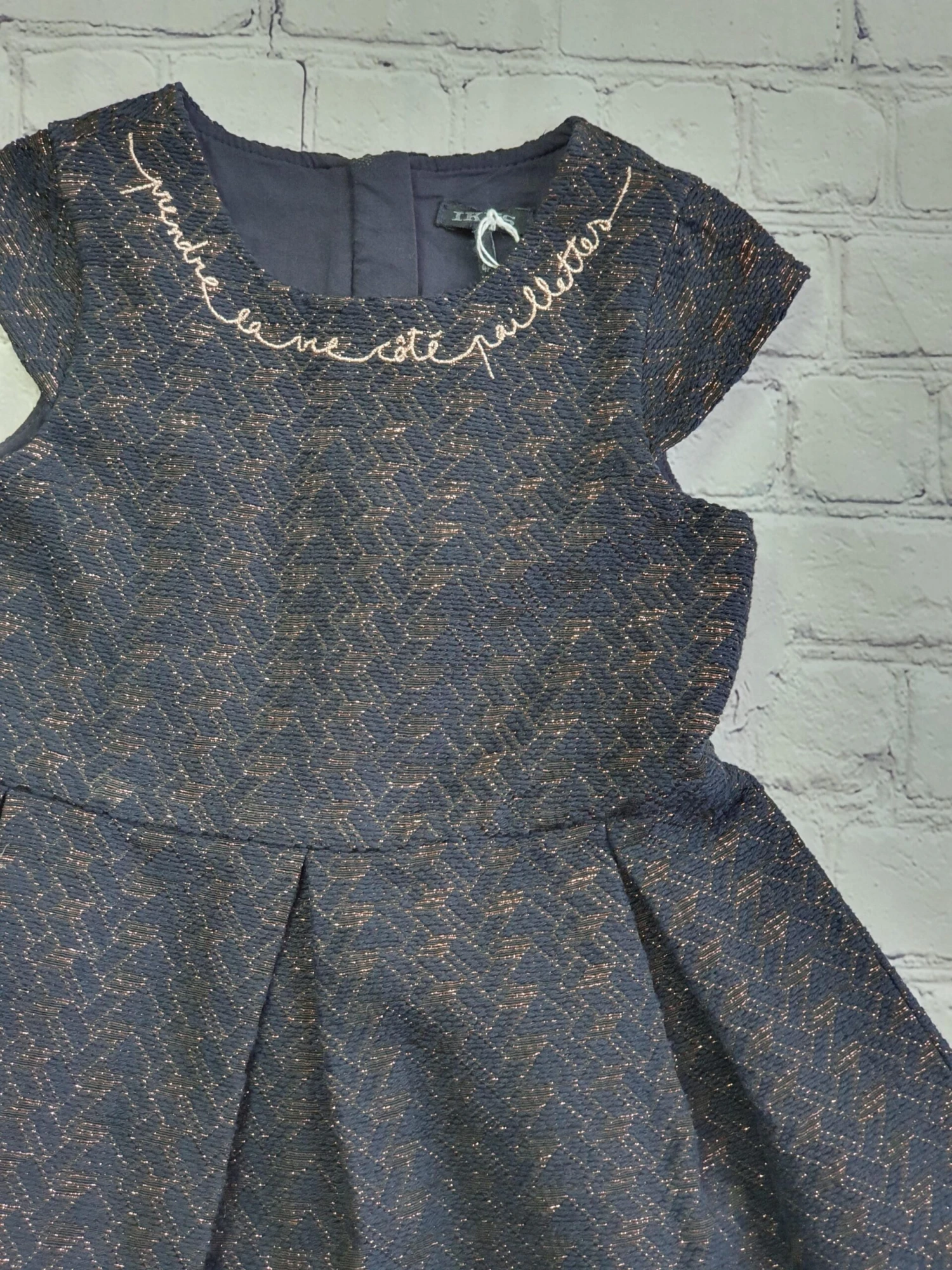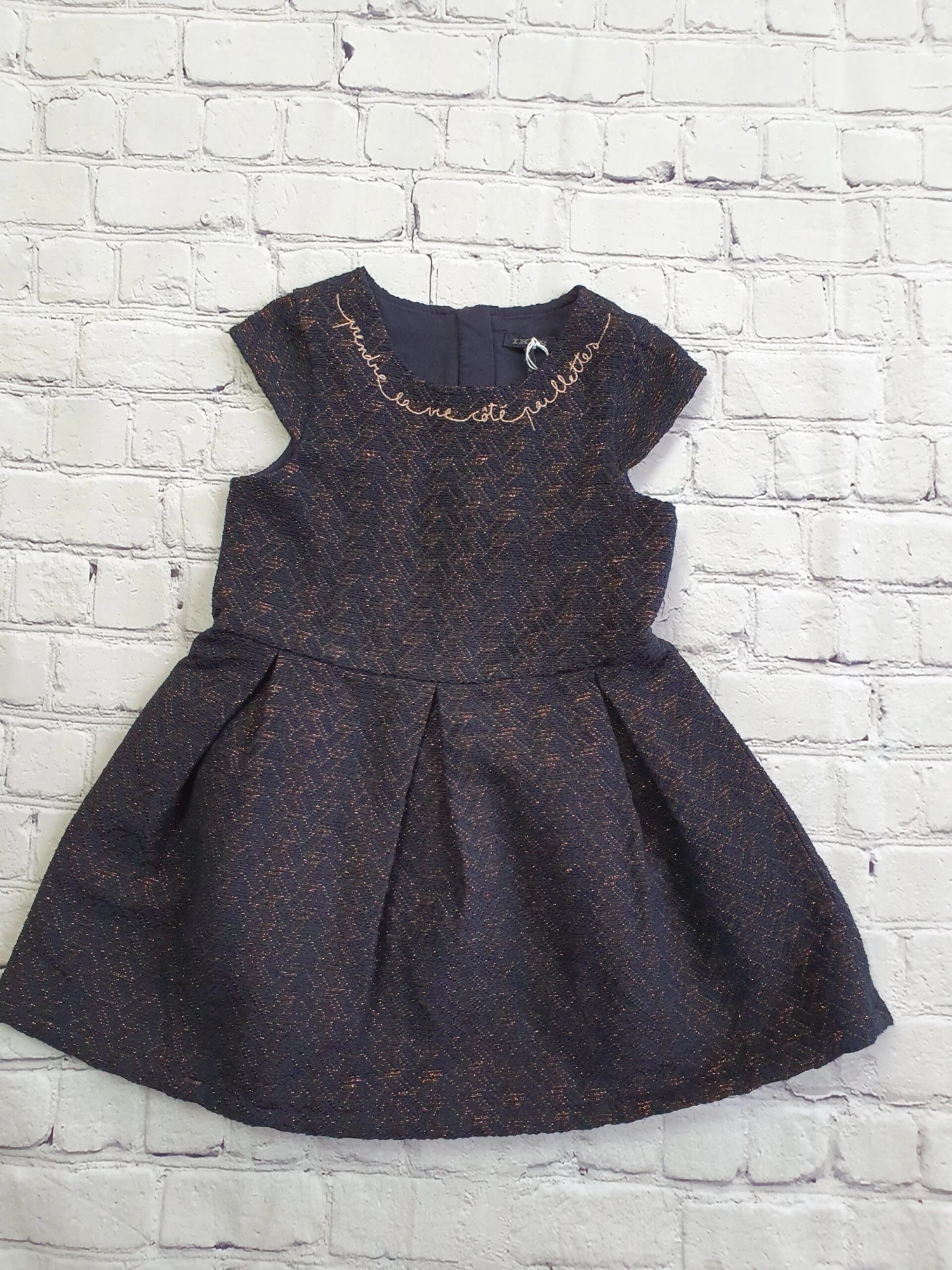 Robe marine et or en trÚs bon état, écrit « prendre la vie cote paillettes »